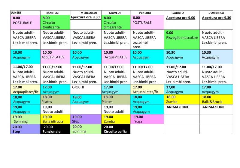 Palinsesto Palestra e Piscina